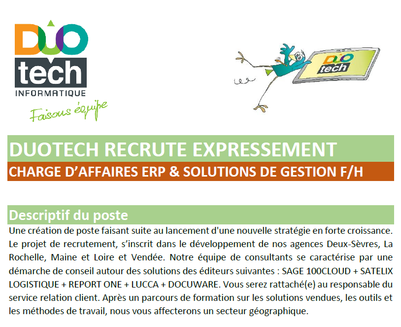 DUOTECH RECRUTE EXPRESSEMENT UN CHARGE D’AFFAIRES ERP & SOLUTIONS DE GESTION F/H