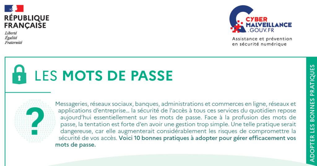 Retrouvez le mémo “LES MOTS DE PASSE“ initié par le site CyberMalveillance.