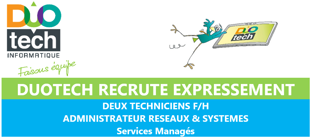 DUOTECH recrute expressément 2 techniciens F/H – Administrateur Réseaux & Systèmes – SERVICES MANAGES.