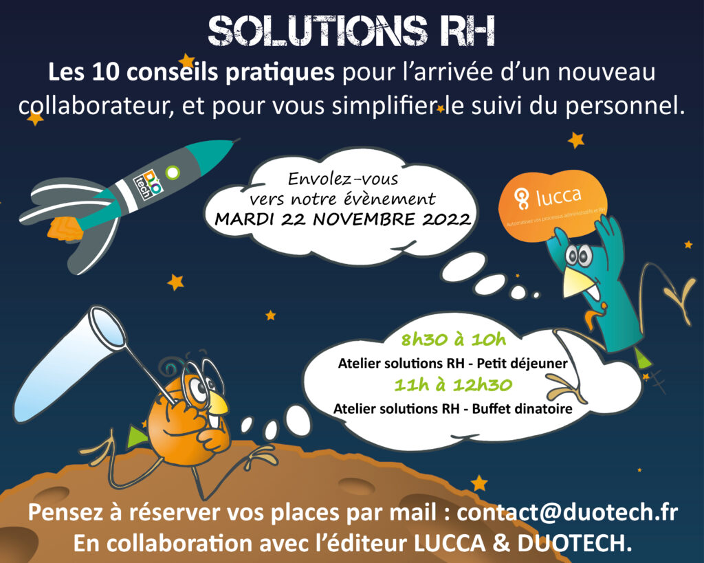 En collaboration avec l’éditeur LUCCA, DUOTECH vous invite le mardi 22 novembre à découvrir toutes les facettes de la gestion des RH, par exemple :